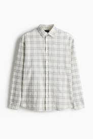 Shirt in textured cotton poplin featuring a turn-down collar, French front and a yoke with a box pleat at the back. Long sleeves with a slit and adjustable buttoning at the cuffs. Gently rounded hem. Loose fit for a generous but not oversized silhouette.